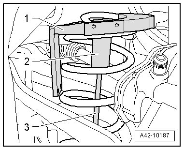 - Insert the Spring Tensioning System - Audi Set - Thrust Plate with Securing Plate -VAS6274/10-2- and install the piston -2- with the T-handle -3-.