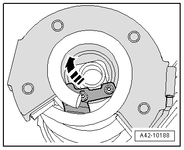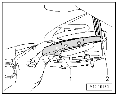 - Insert the new Spring Tensioning System - Audi Set - Thrust Plate with Swivel Bearing -VAS6274/10-1- with the locking device bracket from the supplementary seat from the outside.