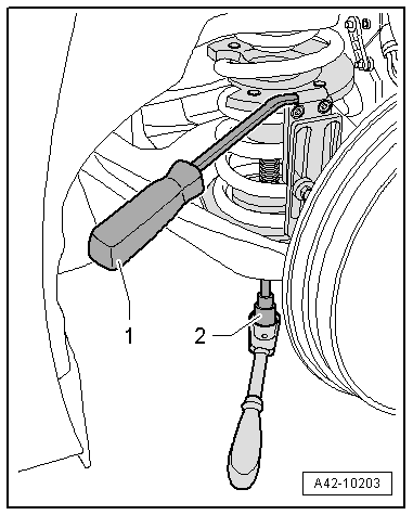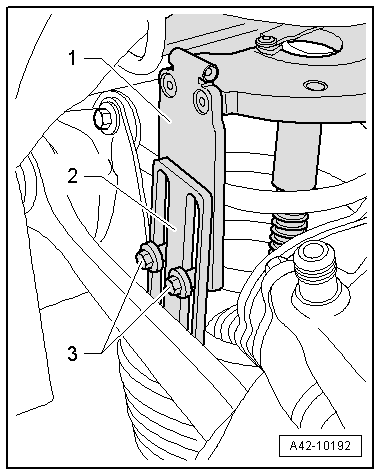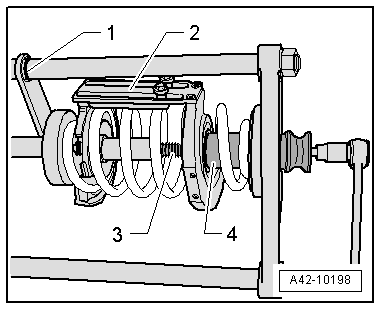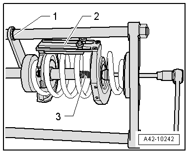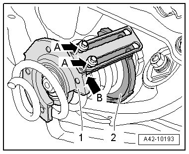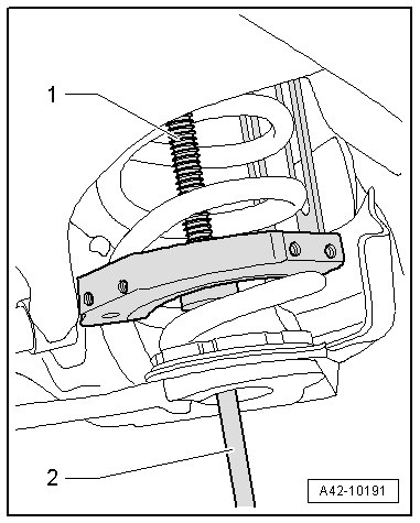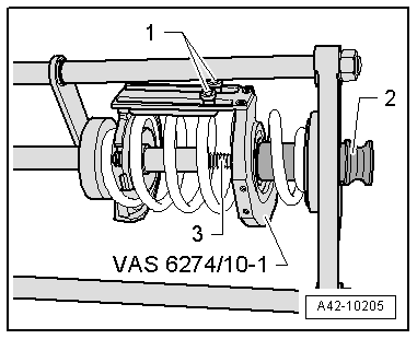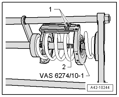 - Remove the locking device bolts -1- and the Spring Tensioning System - Audi Set - Thrust Plate with Swivel Bearing -VAS6274/10-1-.