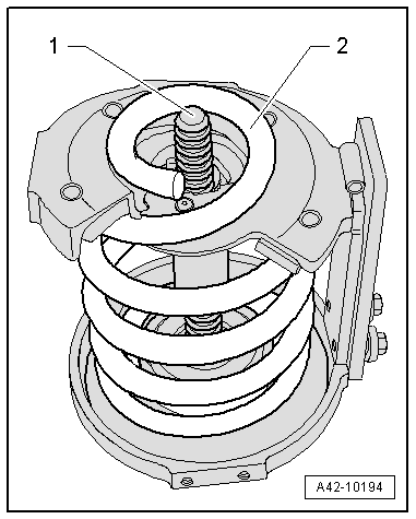 - Install the coil spring -1- in the lower spring plate -2- as far as the stop.