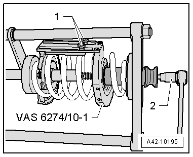 - Tension the coil spring using the Spring Tensioning System - Socket -VAS6274/6-. At the same time tension using the Spring Tensioning System -VAS6274- and the Pneumatic/Hydraulic Foot Pump -VAS6179-.