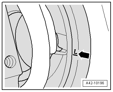 - Make sure the upper spring plate is installed; eccentric spring plate installed position. Refer to → Fig. "Upper Eccentric Spring Plate Installed Position". Install if necessary.