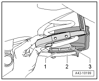 - Insert the new Spring Tensioning System - Audi Set - Thrust Plate with Securing Plate -VAS6274/10-2- with the locking device bracket from the supplementary seat from the outside.