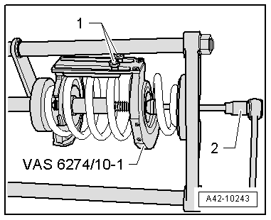 - Release the coil spring tension using the Spring Tensioning System - Socket -VAS6274/6-. Release the tension at the same time using the Spring Tensioning System -VAS6274- and the Pneumatic/Hydraulic Foot Pump -VAS6179-.