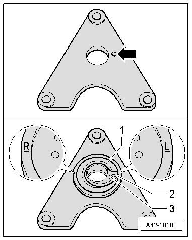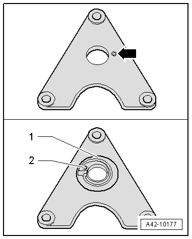 - Insert the new spring plate -1- with the hole -3- with the counter bore from the supplementary set.