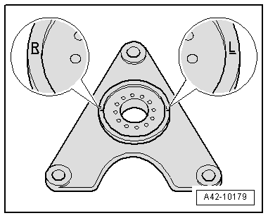 - Insert the new plate with the threaded holes from the supplementary set so the markings "R" and "L" are horizontal to the plate.