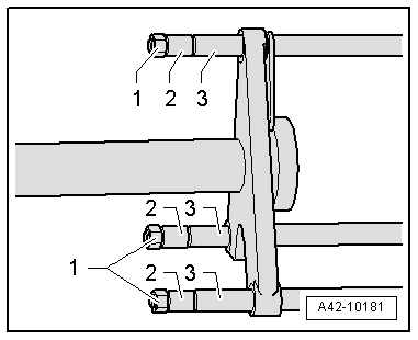 - Install the sleeves -2 and 3- from the supplementary seat and install the nuts -1- lightly.