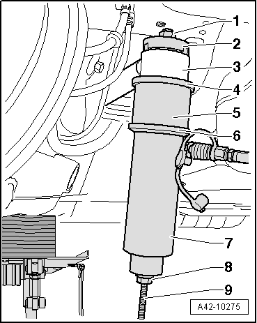 - Bleed the rear axle air spring. Refer to → Chapter "System, Venting or Filling".