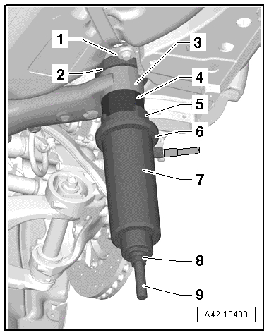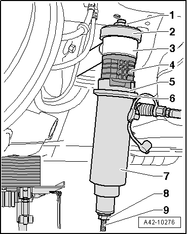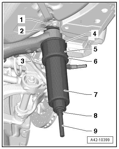 - Remove the coil springs. Refer to → Chapter "Spring, Removing and Installing, Coil Spring".