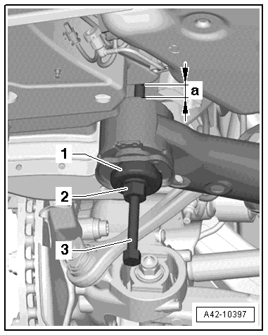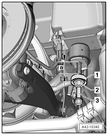 Turn the Subframe Lowering Tool - Nut -T40253/1- on the Subframe Lowering Tool -T40253- until dimension -a- 4 cm is reached.