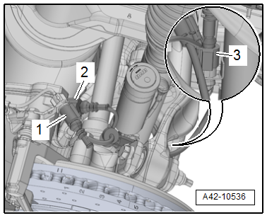 - Install shock absorber. Refer to → Chapter "Shock Absorber, Removing and Installing".