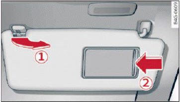 The sun visors for the driver and front passenger can be released from their mounts and turned toward the doors 1.
