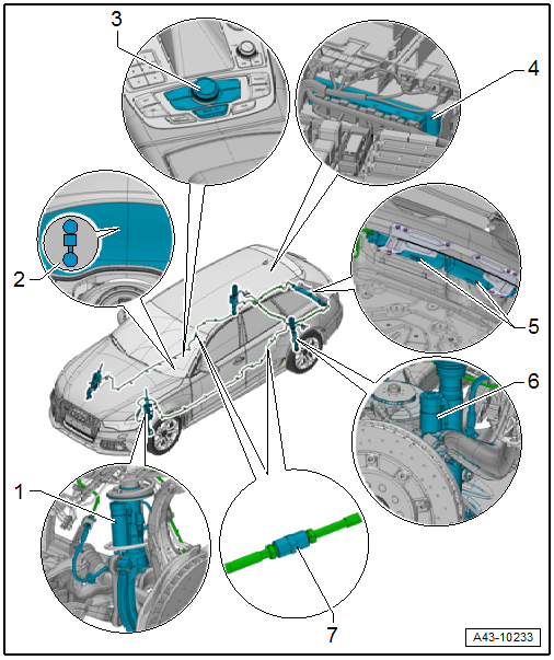 In addition to reducing the pitching and rolling motions of the vehicle body (identical to the hydraulic DRC), the adjustable DRC with variable damping allows the driver to adjust and the damping level using the Audi drive select controls. Each shock absorber has an additional component with an integrated electric motor. The Electronic Damping Control Module -J250- controls the electric motors.