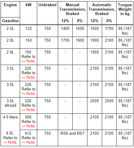 Sedan, Avant and Sportback (Audi A7), through MY 2015
