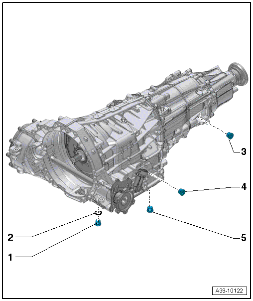 - Fill with transmission fluid (MTF). Refer to → S tronic Transmission; Rep. Gr.39; Transmission Fluid; Transmission Fluid, Draining and Filling