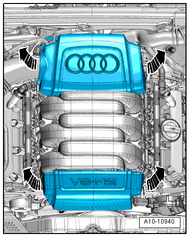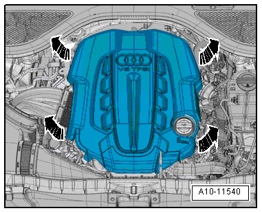 - Remove the engine cover -arrows-.