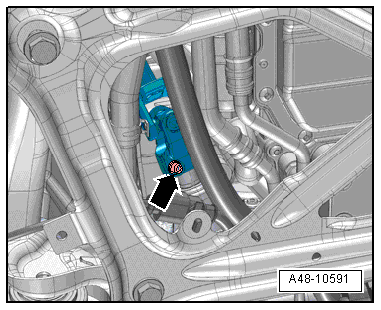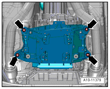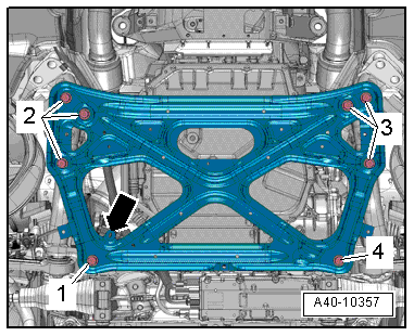 - Remove the subframe crossbrace, refer to → Suspension, Wheels, Steering; Rep. Gr.40; Subframe; Subframe Crossbrace, Removing and Installing.