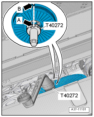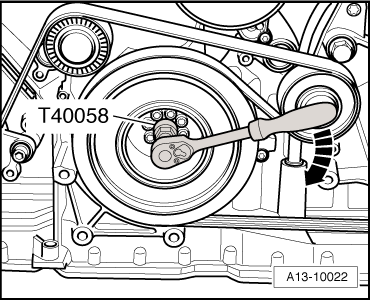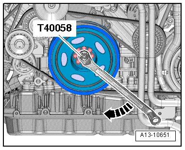 - Attach the Crankshaft Turning Tool -T40272- to the vibration damper bolts.