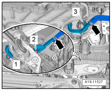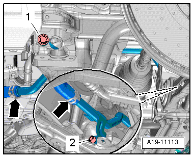 - Drain the coolant, refer to → Rep. Gr.19; Cooling System/Coolant; Coolant, Draining and Filling.