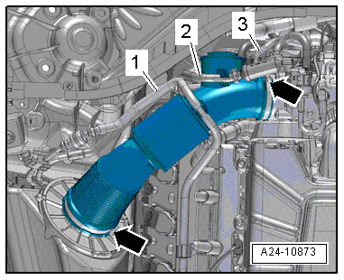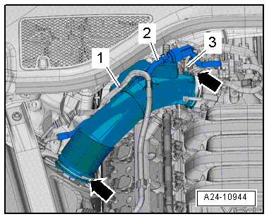 - Remove the vacuum hose -3- from the connection on the air guide pipe.