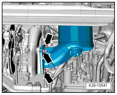 - Loosen the clamps -arrows- and remove the air guide pipe.