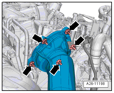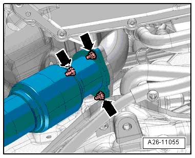 - Remove the particulate filter and the front exhaust pipe, refer to → Rep. Gr.26; Exhaust Pipes/Mufflers; Overview - Muffler.