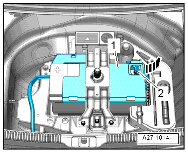 - Disconnect the battery ground cable -2-, refer to → Electrical Equipment; Rep. Gr.27; Battery; Battery, Disconnecting and Connecting.