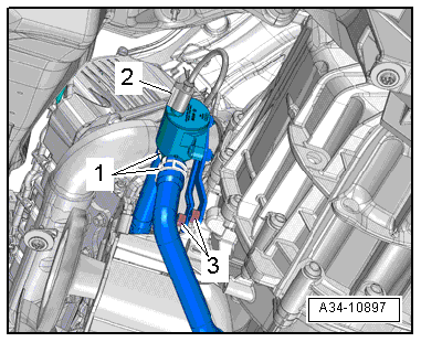 - Loosen the clamp -1- and remove the coolant hose.