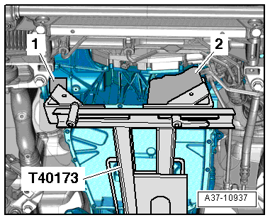 The Gearbox Support -T40173- must not be set on the ATF pan.