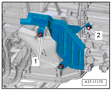 - Remove the noise insulations -1- and -2-, refer to → Body Exterior; Rep. Gr.66; Noise Insulation; Noise Insulation, Removing and Installing.