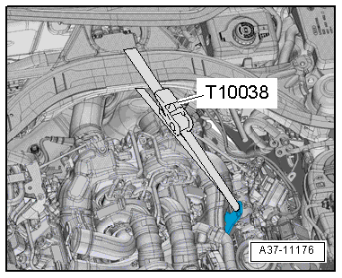 - Secure the engine with the Tensioning Strap -T10038- as illustrated.