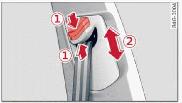 With the front seats, the height adjustment of the seat can also be used to adjust the position of the safety belts.