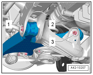 Due to the inaccessibility of the inner threaded connection -1-, the upper control arm can only be removed when the subframe has been removed.