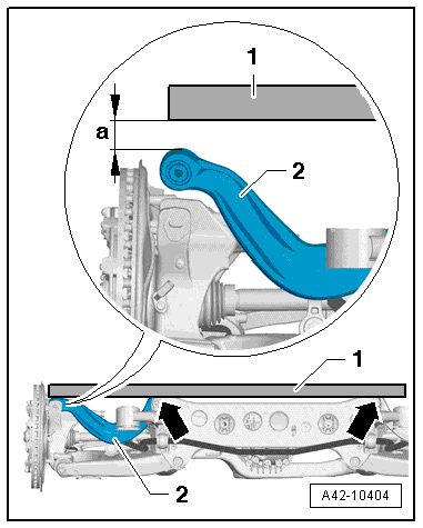 - Position the upper control arm -2- so dimension a = 11 mm between the flat iron -1- and the stamping burr on the upper control arm -2-.