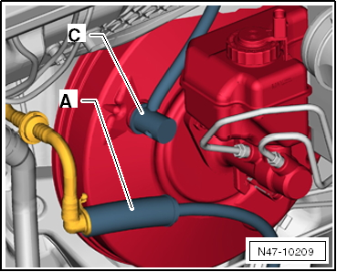 - Open the shut-off valve -C- to evacuate the brake booster.