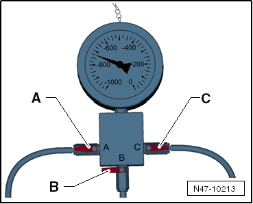- Create a vacuum using the Hand Vacuum Pump -VAS6213- for comparison. Refer to → Chapter "Vacuum, Creating with Hand Vacuum Pump".
