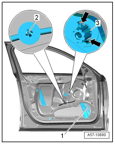 - Remove the window regulator motor. Refer to → Chapter "Window Regulator Motor, Removing and Installing".