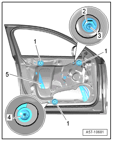 - Remove the door window. Refer to → Chapter "Front Door Window, Removing and Installing".