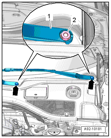 - Remove the plenum chamber cover and cowl panel trim. Refer to → Body Exterior; Rep. Gr.50; Bulkhead; Plenum Chamber Cover, Removing and Installing.