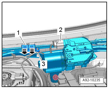 - Free up the wiring harness -1- on the windshield wiper frame.