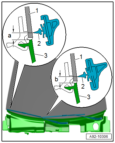 If the windshield wiper motor is to be run during the work procedure, the hood must be closed, otherwise the voltage supply of the wiper motor will be interrupted.