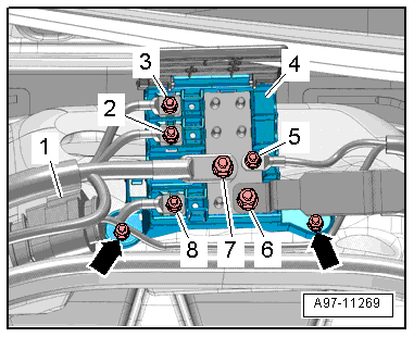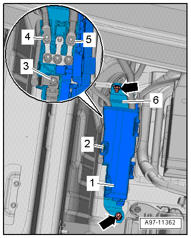 - Remove the battery inlet air guide. Refer to → Heating, Ventilation, and Air Conditioning; Rep. Gr.87; Battery Cooling Module.