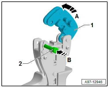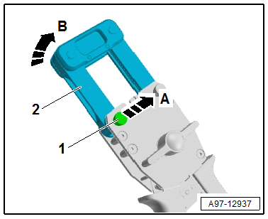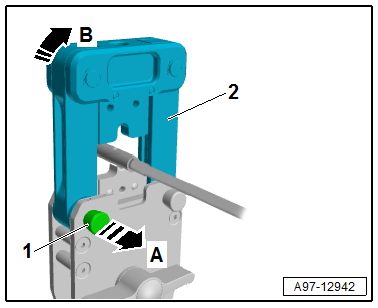 - Push the locking pin -2- in the direction of -arrow- all the way.