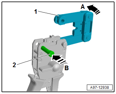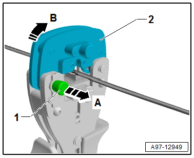- Push in the crimp stamp -1- until it clicks into place in the mount -2- on the adapter -arrow A-.