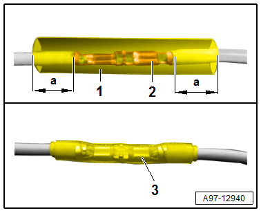 - For the repair remove the corresponding butt connection with a heat-shrinkable tube from the Wiring Harness Repair Set -VAS 631 001-.