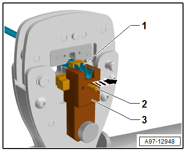 - Use the Wiring Harness Repair - Crimping Plier - Base Tool -VAS1978/1-2- to press the crimp connector.