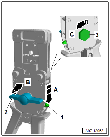 - Open the crimping tool from the Wiring Harness Repair Set -VAS 631 001-.
